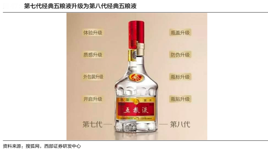 典型案例:五糧液一直是國內知名的高端白酒,其先后獲得酒業(yè)大獎,更有優(yōu)秀的產(chǎn)品支撐,同時明星產(chǎn)品會持續(xù)迭代,與時俱進。2019 年 6 月,公司核心大單品第八代經(jīng)典五糧液推向市場。新品八代普五從口感、品質、包裝和防偽方面均較七代普五有所升級,同時八代普五出廠價定為 889 元/瓶, 較七代普五出廠價高出 100 元/瓶。