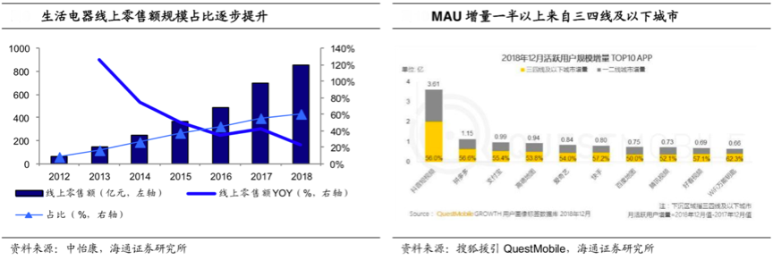 “品牌戰(zhàn)略資產(chǎn)”的打造需要強(qiáng)大的品牌消費(fèi)體驗(yàn)支撐,而全渠道、全方位的“價(jià)值消費(fèi)體驗(yàn)”倍受追捧,線上線下一體化的“全渠道品牌觸點(diǎn)”正逐步構(gòu)建中。根據(jù)中怡康、海通證券研究所等綜合資訊表明,2018 年小家電行業(yè)整體線上渠道占比為 60%,線上市場(chǎng)已超越線下市場(chǎng)規(guī)模且增速仍舊高于線下增速。伴隨著電商及物流的蓬勃發(fā)展,過(guò)去幾年小家電整體線上市場(chǎng)增速均在 20%以上,線上銷(xiāo)售額占比不斷增加,帶動(dòng)了行業(yè)的整體增長(zhǎng)。