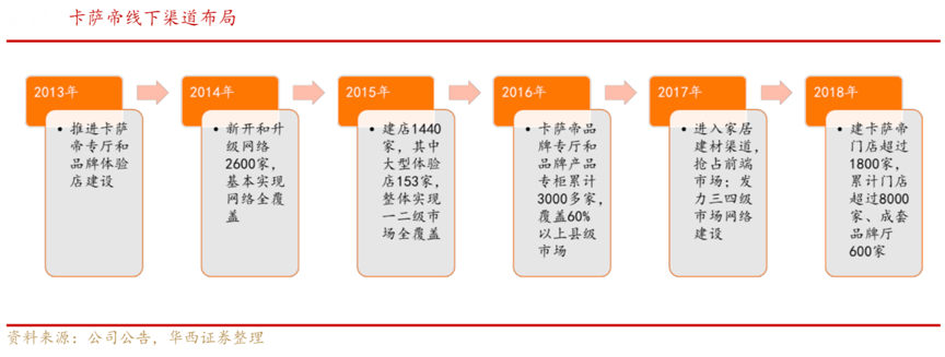 根據(jù)公司公告、華西證券整理等綜合資訊表明,截至2018年,公司已累計建成卡薩帝門店 8000 家、卡薩帝成套品牌廳 600 家,而西門子、博世等品牌線下門店數(shù)量均不足百家,卡薩帝線下渠道覆蓋密度相較其它高端家電品牌形成絕對領(lǐng)先優(yōu)勢。
