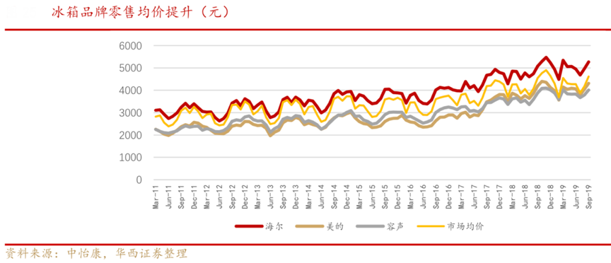 “十二大關(guān)鍵行動”之三——“刷新消費理念”:挖掘次高端冰箱消費,刷新“高性價比”消費理念,聚焦拓展“高性價比人群”。據(jù)市場公開資訊表明,2019年單價超過 1 萬元的冰箱銷量同比上升 10.8%,單價超 過 6 千元的洗衣機(jī)銷量同比增速接近 40%,遠(yuǎn)高于全價格段 冰洗產(chǎn)品 0.7%的年度增速。