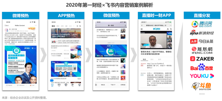 傳媒品牌IP的案例值得休閑食品行業(yè)深入借鑒。根據(jù)艾瑞網(wǎng)《2020年中國內容營銷策略研究報告》、企業(yè)訪談等資訊顯示,2020年,在疫情大背景下線上協(xié)同辦公成為重要場景,第一財經(jīng)聯(lián)合飛書打造了直播內容營銷活動,其結合“云上會——企業(yè)抗疫生存 指南”系列大直播,為飛書定制了“「管理未來式」·飛越8小時”的選題,邀請企業(yè)家、學者和一線行業(yè)參與者圍繞未來工作模式的話題展開線上討論,通過“應對未來管理的極速變革”、“直播攪動下的新零售趨勢”、“疫情之下,還適合 創(chuàng)業(yè)嗎?”三場直播活動,實現(xiàn)了超過610萬的全網(wǎng)宣傳總流量。