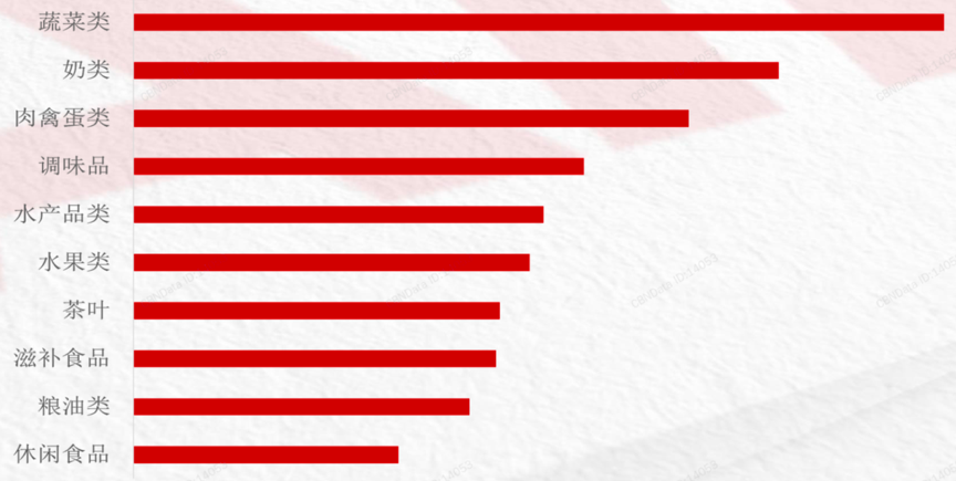 同時,平臺中的農(nóng)產(chǎn)品品類銷售額增速TOP10分別為蔬菜、奶類、肉禽蛋、調(diào)味品、水產(chǎn)品、水果、茶葉、滋補(bǔ)食品、糧油、休閑食品,基礎(chǔ)性農(nóng)產(chǎn)品消費(fèi)仍然占據(jù)主流,以茶葉、滋補(bǔ)食品等代表的可選農(nóng)產(chǎn)品消費(fèi)(品質(zhì)類農(nóng)產(chǎn)品消費(fèi))仍有較大的增長空間。