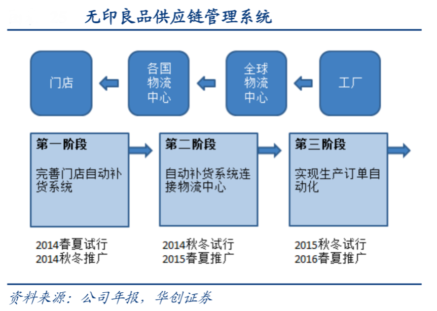 經(jīng)典案例:根據(jù)無(wú)印良品官網(wǎng)等綜合資訊表明,其建立“可視化”供應(yīng)鏈系統(tǒng),以日本作為全球總部,全球的物流數(shù)據(jù)都可以被總部追蹤查看,實(shí)現(xiàn)對(duì)產(chǎn)品標(biāo)簽、質(zhì)量、規(guī)格的統(tǒng)一管理。