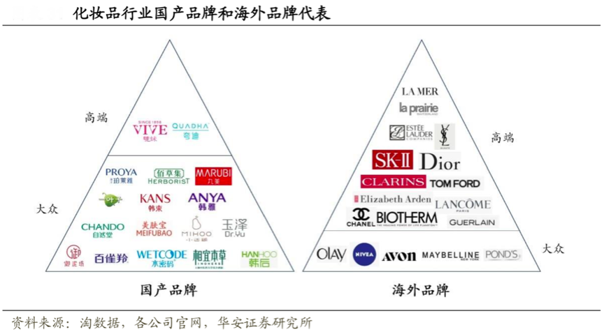 經(jīng)典案例:根據(jù)淘數(shù)據(jù)、各公司官網(wǎng)和華安證券研究所等綜合資訊表明,化妝品行業(yè)國產(chǎn)品牌和海外品牌眾多,高端市場被海藍之謎、雅詩蘭黛、YSL 等國際品牌占據(jù),國產(chǎn)品牌主要在大眾市場競爭。根據(jù)歐睿數(shù)據(jù),2018 年我國大眾護膚品 TOP10 品牌中,超過一半為國產(chǎn)品牌;而高端護膚品 TOP10 品牌全部都是國際品牌,競爭態(tài)勢日益激烈。