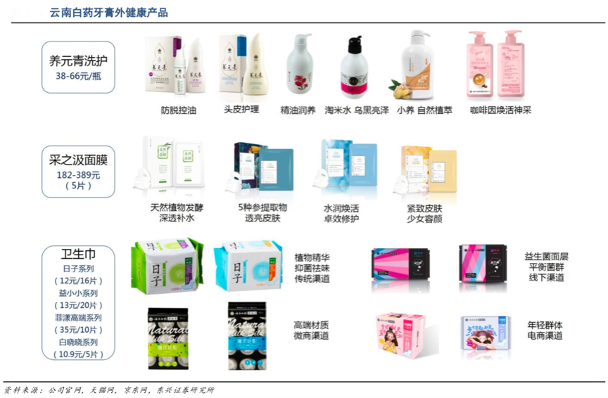 經(jīng)典案例:根據(jù)公司官網(wǎng)、天貓網(wǎng)、京東網(wǎng)和東興證券研究所等綜合資訊表明,云南白藥陸續(xù)推出了金口健系列(平衡口腔菌群)、益齒系列(口腔修護(hù))、朗 健系列(煙后修復(fù))、雙效抗敏系列(緩解 牙齒敏感)、漬清系列(粘 膜修復(fù))、兒童牙膏(6-12 歲兒童專(zhuān)用,食用級(jí)材料),價(jià)格區(qū)間 14-65 元,實(shí)現(xiàn)了牙膏全功能、中高端價(jià)格區(qū)間、不同使用群體的廣覆蓋,創(chuàng)造了全方位的“泛健康消費(fèi)體驗(yàn)”。