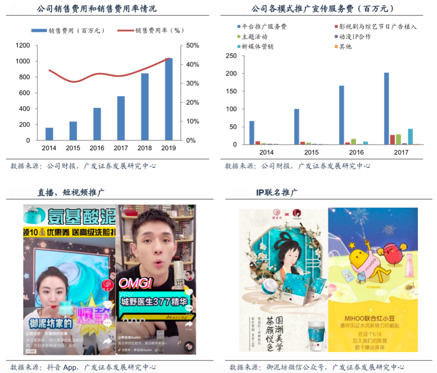 經(jīng)典案例:根據(jù)公司財(cái)報(bào)、廣發(fā)證券發(fā)展研究中心等綜合資訊表明,御淪坊加強(qiáng)了與抖音、小紅書(shū)、嗶哩嗶哩等平臺(tái)的合作,并通過(guò)短視頻植入、網(wǎng)紅直播等方式強(qiáng)化了新媒體的推廣及內(nèi)容營(yíng)銷(xiāo),傳遞公司品牌價(jià)值。2019 年公司與李佳琦直播合作47次,總計(jì)觀看量超4,000萬(wàn)人次,與薇婭直播合作超過(guò)30 次,短視頻投放次數(shù)超過(guò)1200余條,合作達(dá)人超700人。
