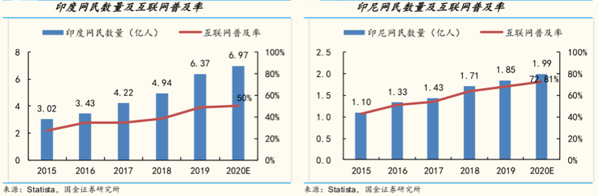 經(jīng)典案例:根據(jù)Statista、國金證券研究所等綜合資訊表明,印度、印尼等東南亞地區(qū)人口基數(shù)大、互聯(lián)網(wǎng)普及率不斷提升,PDF 可拓展空間巨大。根據(jù) Statista 最新數(shù)據(jù)顯示,截至 2019 年底印度互聯(lián)網(wǎng)普及率達(dá) 48.5%,預(yù)計2020 年將 達(dá) 50%;印尼總?cè)丝跒?nbsp;2.7 億,互聯(lián)網(wǎng)普及率為 68.34%,預(yù)計 2020 年將提升至 72.81%。印度、印尼等東南亞國家龐大的人口基數(shù)和不斷提升互聯(lián)網(wǎng)普及率,將為 PDF廠商帶來明顯增量。