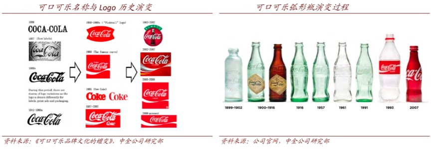 經(jīng)典案例:根據(jù)《可口可樂品牌文化的嬗變》、中金公司研究部、公司官網(wǎng)等綜合資訊表明,可口可樂的名稱及LOGO設(shè)計完成后,長期不變,同時僅有 1%的美國人不能通過瓶身形狀區(qū)別出可口可樂。在此后的 100 多年里,公司的包裝一直保留其經(jīng)典弧形瓶的設(shè)計,弧形瓶更成為可口可樂獨有的文化標(biāo)識。