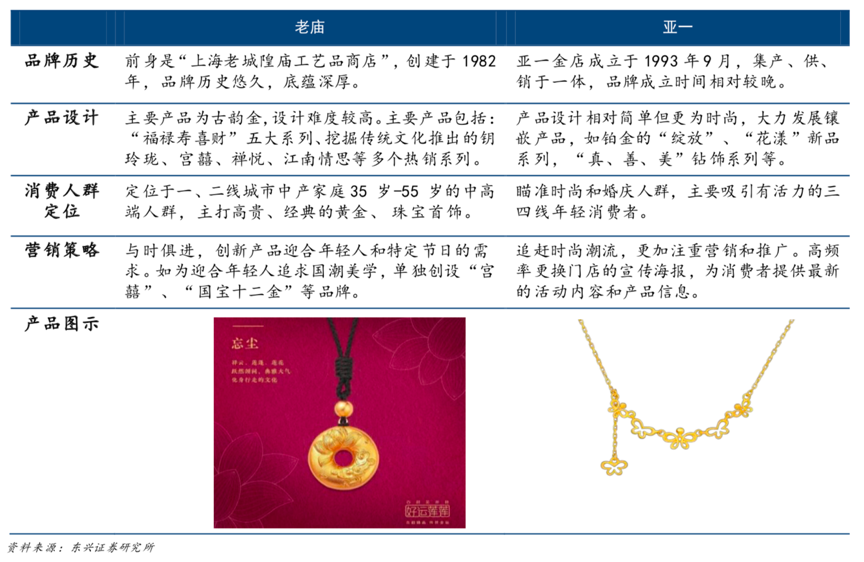 經(jīng)典案例:根據(jù)東興證券研究所等綜合資訊表明,豫園商城擁有老廟和亞一兩大核心黃金珠寶品牌,老廟主打高端珠寶品牌,新產(chǎn)品系列古韻金,單價(jià)和設(shè)計(jì)難度均較高,聚焦于一二線城市,以長(zhǎng)三角 及江蘇、安徽、山東等鄰近省份為核心布局區(qū)域。而亞一主打中低線市場(chǎng),產(chǎn)品單價(jià)在 2000-4000 元左右, 以“降維不降級(jí)”策略聚焦于三、四、五線城市,雙品牌布局差異化搶占“顧客心智”,推動(dòng)品牌的迅猛發(fā)展。