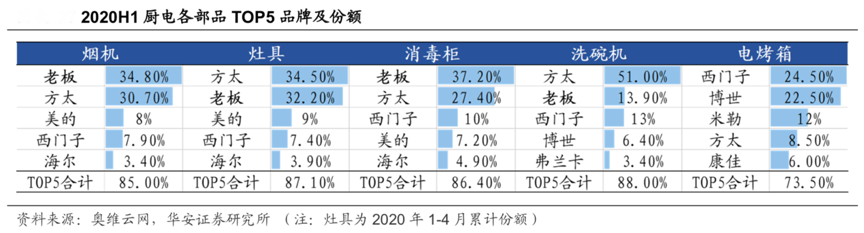 經(jīng)典案例:根據(jù)奧維云網(wǎng)、華安證券研究所等綜合資訊表明,廚電各部品工程渠道品牌集中度遠(yuǎn)高于零售渠道,且市占率較高的都是老板、方太、西門子等定位高端的品牌,越高的“品牌力”越能掌握商業(yè)合作的主動(dòng)權(quán)。