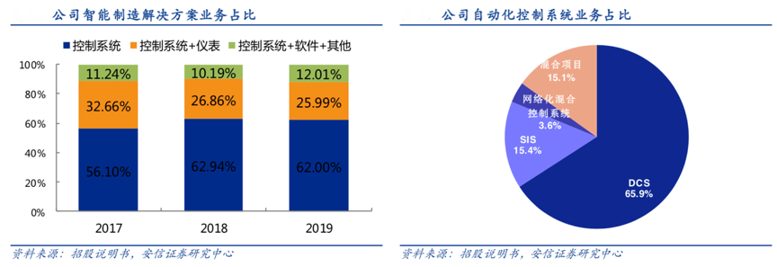 經(jīng)典案例:根據(jù)招股說明書、安信證券研究中心等綜合資訊表明,中控技術(shù)公司自動化控制系統(tǒng)產(chǎn)品中SIS系統(tǒng)主要是保障工廠安全運行,在工業(yè)生產(chǎn)期間提供對設(shè)備、人身、環(huán)境的安全保護(hù),避免惡性事故發(fā)生,同時自動化控制系統(tǒng)是智能制造解決方案的主要收入貢獻(xiàn)來源,2019年,智能制造解決方案中 62%的 收入來源于控制系統(tǒng),其中 DCS 系統(tǒng)占控制系統(tǒng)收入的 66%。