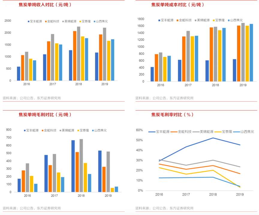 經(jīng)典案例:根據(jù)公司公告、東方證券研究所等綜合資訊表明。寶慧能源公司煤礦所產(chǎn)原煤全部經(jīng)洗選制精煤后煉焦,受益于自有煤礦配套,其焦炭板塊盈利水平與煤焦一體化企業(yè)較為接近,遠(yuǎn)高于外購原料的焦炭企業(yè)。公司盈利優(yōu)勢主要來自于成本端,約 50%的精煤來源于自有 煤礦,精煤成本較完全外購低約 170-220 元/噸,按照1.37 的單耗,對應(yīng)焦炭原料成本節(jié)省 230- 300 元/噸。而毛利端公司近三年平均單噸毛利為 559 元/噸,較可比公司平均高 221 元/噸,基本與原料成本節(jié)省幅度一致。