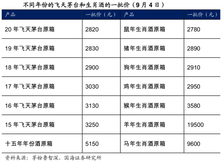經(jīng)典案例:根據(jù)茅粉魯智深、國海證券研究所等綜合資訊表明,對(duì)于茅臺(tái)酒來說, 隨著年份的增長,茅臺(tái)酒價(jià)格也在相應(yīng)提高,而對(duì)于生肖紀(jì)念酒等非標(biāo)酒,很多只在特定年份生產(chǎn),稀缺性和紀(jì)念意義較強(qiáng),也具有更強(qiáng)的時(shí)間溢價(jià)效應(yīng)。