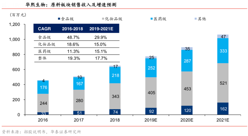 經典案例:根據(jù)招股說明書、華泰證券研究所等綜合資訊表明,華熙生物是全球最大的透明質酸生產及銷售企業(yè)(2018年銷量全球占比 36%,第二至第五名市場份額均不超過12%)。在技術要求最為嚴格的醫(yī)藥級原料市場,其具有全球注冊資質全面的獨特優(yōu)勢(7項國內,21項海外,包括美國、歐盟、日本等發(fā)達市場),向全球醫(yī)藥、化妝品、食品制造企業(yè)提供 2kDa-4,000kDa 多種分子量段精準控制的原料產品(200+規(guī)格),領跑地位明顯。