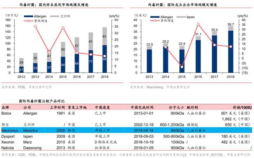 經典案例:根據(jù)CDE、PDB、華泰證券研究所等綜合資訊表明,2015 年華熙生物與韓國肉毒巨匠 Medytox 成立合資公司,2018 年 4 月“Neuronox” 申報 NMPA 上市,有望成為中國第三款獲批的肉毒產品。
