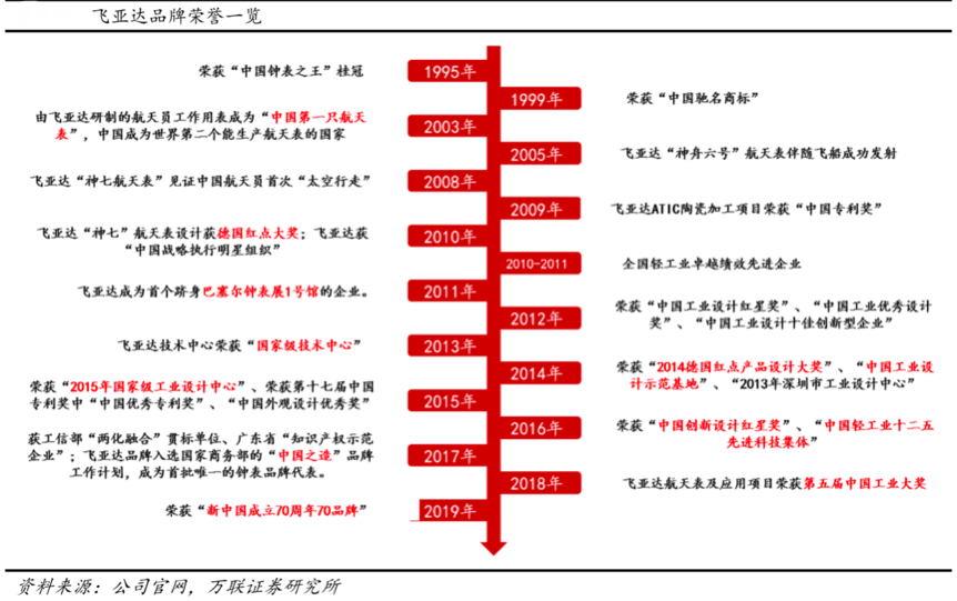 經(jīng)典要素:根據(jù)公司官網(wǎng)、萬(wàn)聯(lián)證券研究所等綜合資訊表明,“飛亞達(dá)”是國(guó)內(nèi)手表領(lǐng)軍品牌、世界三大航天表品牌之一,2011年作為首個(gè)源于中國(guó)的國(guó)際腕表品牌進(jìn)駐瑞士巴塞爾鐘表展1號(hào)館,2019年,作為腕表行業(yè)唯一一家代表品牌,飛亞達(dá)榮登“新中國(guó)成立70周年70品牌”榜單。