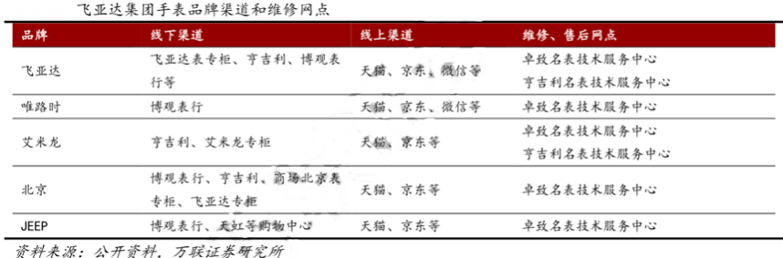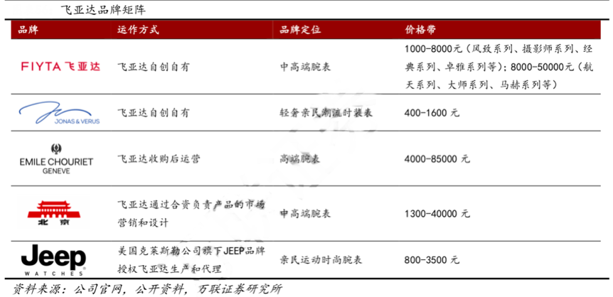 經(jīng)典要素:根據(jù)公司官網(wǎng)、公開資料、萬(wàn)聯(lián)證券研究所等綜合資訊表明,目前,飛亞達(dá)通過多年深耕,已擁有自主品牌 “飛亞達(dá)”和“唯路時(shí)”,并在2017年收購(gòu)瑞士高端名表“艾米龍”,拼通過合資參與“北京”手表品牌運(yùn)營(yíng),以授權(quán)經(jīng)營(yíng)的方式運(yùn)營(yíng)了“JEEP”品牌。