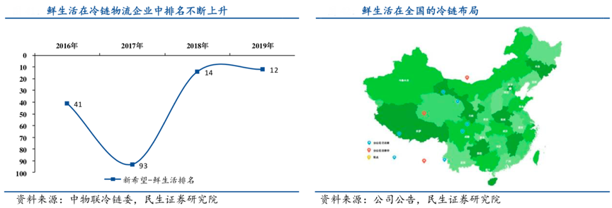 經(jīng)典案例:根據(jù)中物聯(lián)冷鏈委、公司公告、民生證券研究院等綜合資訊表明,新希望集團(tuán)旗下?lián)碛袑I(yè)的冷鏈物流 “鮮生活”,為新乳業(yè)賦能冷鏈。截至 2019 年,“鮮生活”在國內(nèi)冷鏈物流企業(yè)綜合實力排名第 12,具備全國城市全網(wǎng)服務(wù)能力。
