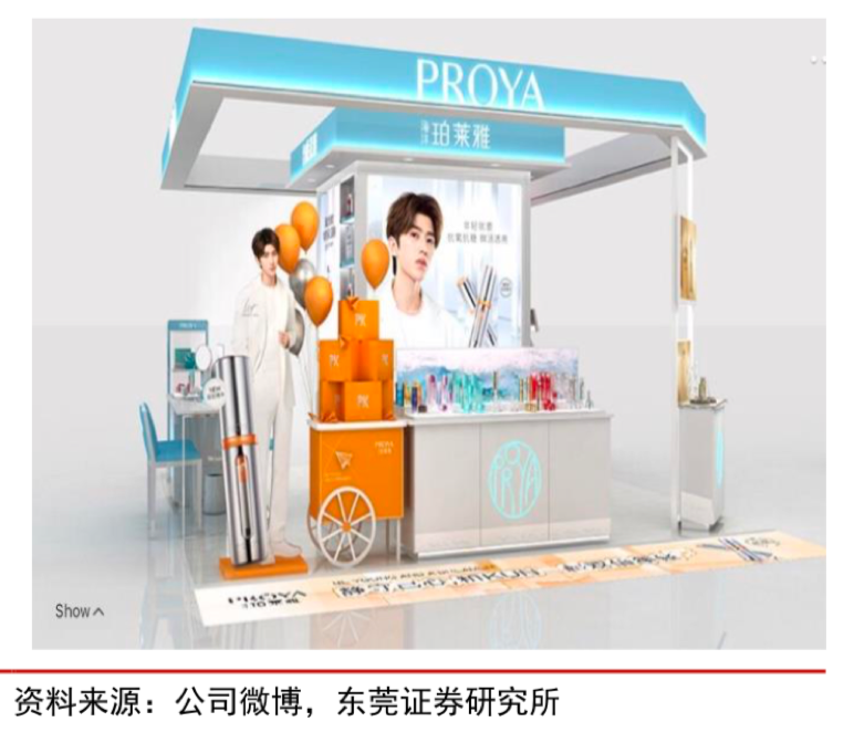 經(jīng)典案例:根據(jù)公司微博、東莞證券研究所等綜合資訊表明,2020年4月,珀萊雅牽手當紅青春偶像明星蔡徐坤,同期推出新品“雙抗”精華,新代言人官宣后開售半個小時內(nèi),新品預(yù)售額達到一萬多,當月在天貓旗艦店月銷量達五萬多,同時公司為新代言人策劃生日特別活 動,包括把專柜布置成代言人慶生主題吸引粉絲打卡,為實體店引流。