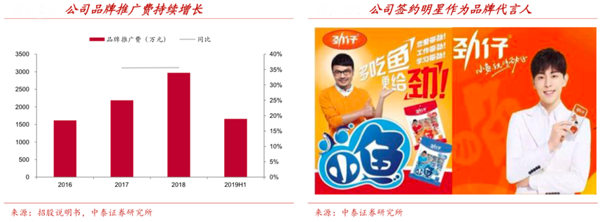 經(jīng)典案例:根據(jù)招股說明書、中泰證券研究所等綜合資訊表明,隨著居民收入持續(xù)提升,消費者對于休閑零食的需求從單純追求口感向追求品牌和品質(zhì)轉(zhuǎn)變,“品牌”成為消費者選擇的重要因素。近年來華文食品品牌推廣費保持快速增長,2017、 2018 年增速均達到 36%,主要是公司在簽約明星代言人、電視和網(wǎng)絡(luò)廣告、芒果 TV《野生廚房》節(jié)目廣告等方面投入持續(xù)增加,品牌影響力持續(xù)增強。