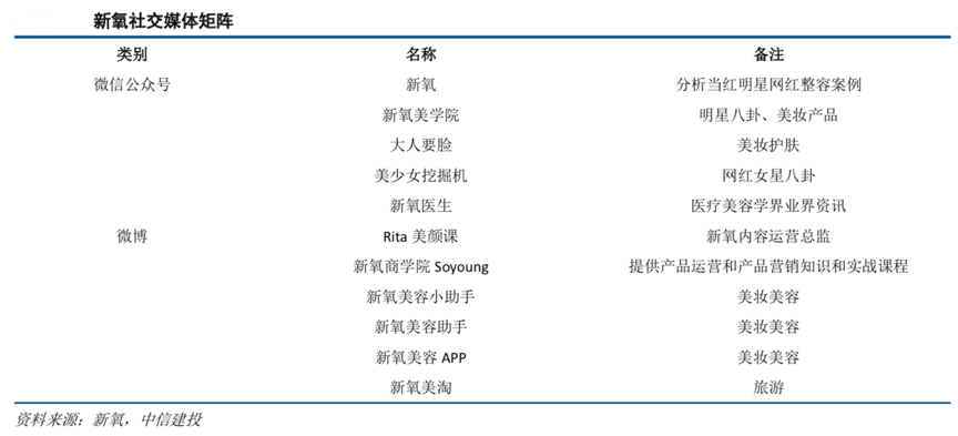 經(jīng)典案例:根據(jù)新氧、中信建投等綜合資訊表明,除了 APP 內(nèi)社區(qū)建設(shè)外,新氧還通過公眾號、微博等社交媒體進行更廣泛的社區(qū)建設(shè)。由于醫(yī)美的客戶群體主要為 20-30 歲的女性,傳播內(nèi)容主要圍繞美妝八卦等主題展開,吸引消費者關(guān)注后,逐漸導(dǎo)流至APP。截 至 2018 年第四季度,新氧推送內(nèi)容的月均瀏覽量之和達 2.4 億。