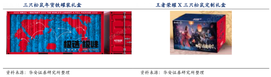 經(jīng)典案例:根據(jù)公司公告、公司官網(wǎng)、華安證券研究所等綜合資訊表明,年輕人更注重零食的趣味性,三只松鼠公司深耕娛樂化戰(zhàn)略,進一步拉近品牌和消費者的距離。在購買食玩的消費者中,90后以及95后消費者對食玩有更高的偏好度,食玩類型不斷豐富,進一步增添食玩趣味,異形零食、趣味包裝、新奇吃法以及趣味玩具等多種形式增添零食的樂趣,拉近了和消費者的距離。