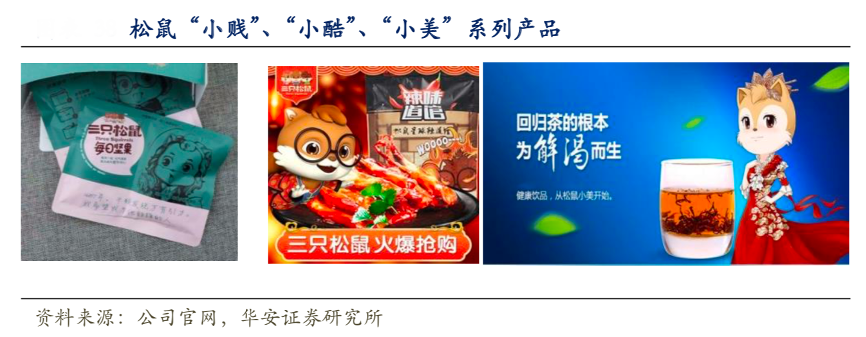 經(jīng)典案例:根據(jù)公司官網(wǎng)、華安證券研究所等綜合資訊表明,三只松鼠公司以堅果起家,松鼠形象和堅 果品類高度契合,代表著不同系列產品,“小酷”——干果類產品,“小賤”——休閑 零食類產品,“小美”——花果類產品。其以動畫為支點,持續(xù)性的內容輸出幫助建立縱深的產品線。
