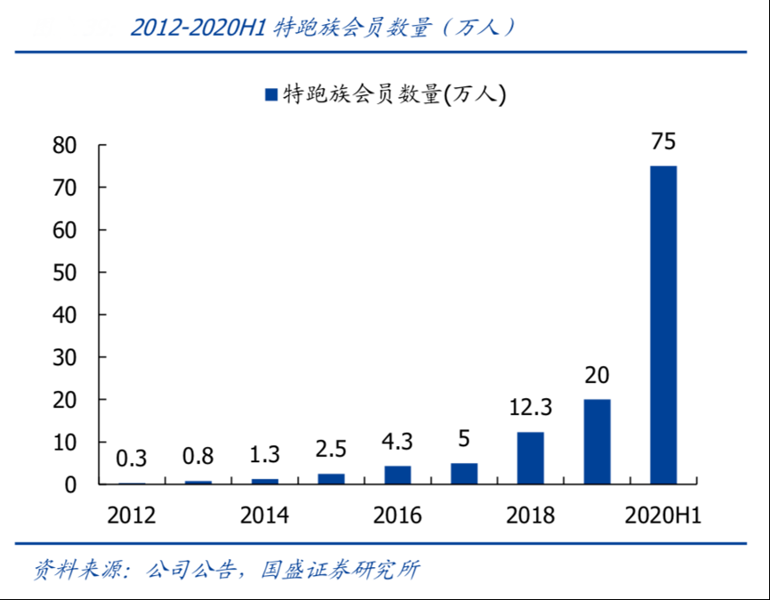 經(jīng)典案例:根據(jù)公司公告、國盛證券研究所等綜合資訊表明, 2012-2021H1特跑族會(huì)員數(shù)量持續(xù)增長,2021H1達(dá)75萬人,特步跑步俱樂部以特跑族會(huì)員需求為出發(fā)點(diǎn),有力增強(qiáng)了用戶粘 性和用戶忠誠度,同時(shí),跑步俱樂部作為“跑者之家”,將城市各地的跑步愛好者聚集起來,營造專業(yè)運(yùn)動(dòng)的氛圍,更好的傳遞品牌形象。