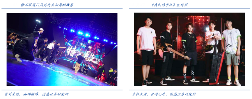 經(jīng)典案例:根據(jù)品牌微博、公司公告、國盛證券研究所等綜合資訊表明,特步2018年“特不服”企劃啟動(dòng),將彰顯品牌潮流態(tài)度、傳播街頭文化、貼近年輕消費(fèi)者作為所有營銷活動(dòng)的出發(fā)點(diǎn)和立足點(diǎn)。在該企劃下,特步的第一個(gè)大動(dòng)作就是贊助現(xiàn)象 級(jí)網(wǎng)綜《中國新說唱》,將說唱內(nèi)含的反叛、獨(dú)立、自由精神和特步的潮流態(tài)度深度結(jié)合。2020 年,為了更好的推廣旗下“街頭”系列產(chǎn)品,特不服開啟 3.0 模 式,通過擔(dān)任音樂真人秀《我們的樂隊(duì)》官方指定鞋服贊助商極大的提升了品牌在年輕 消費(fèi)群體中的熱度。