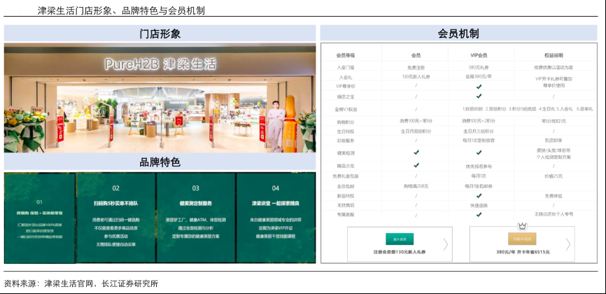 經(jīng)典案例:根據(jù)津梁生活官網(wǎng)、長(zhǎng)江證券研究所等綜合資訊表明,津梁生活定位于健康生活平臺(tái),致力打造線上線下統(tǒng)一運(yùn)營(yíng)的數(shù)字化門(mén)店,為消費(fèi)者提供掃碼購(gòu)、跨境購(gòu)、健美測(cè)等特色項(xiàng)目。目前門(mén)店數(shù)為 8 家、SKU 為4200+,涵蓋美妝、香氛、洗護(hù)、食品、保健、家居、運(yùn)動(dòng)、茶飲等8大產(chǎn)品專區(qū),2020 實(shí)現(xiàn)收入 4000 萬(wàn)元。商業(yè)模式以會(huì)員消費(fèi)為主,以定制妝容、體型檢測(cè)等個(gè)性化服務(wù)增強(qiáng)會(huì)員粘性,通過(guò)大牌化妝品引流,自有品牌和獨(dú)家代理品牌提升利潤(rùn)。