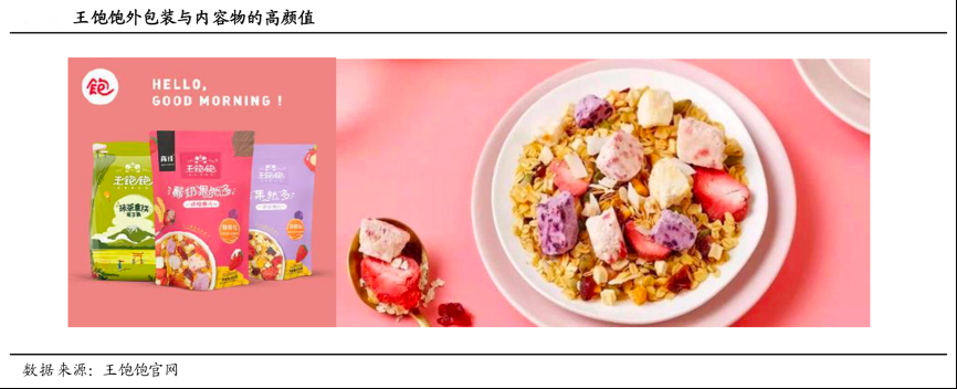 經(jīng)典案例:根據(jù)王飽飽官網(wǎng)、國泰君安證券研究等綜合資訊表明,王飽飽成立于 2016 年,主營非膨化、高纖維、0蔗糖的燕麥,將20-30歲之間的年輕女性定位成目標群體,在麥片中加入了幾乎零熱量的甜菊糖苷(甜味劑),推出含有大塊酸奶和果干的燕麥產(chǎn)品,契合年輕女性這一細分群體對于“好吃又塑身”的核心需求。