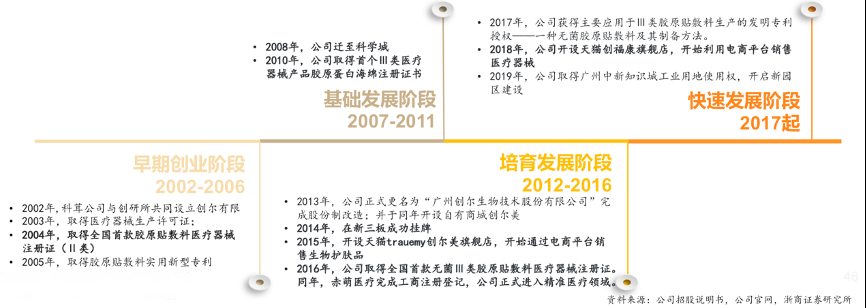 經(jīng)典案例:根據(jù)公司招股說(shuō)明書(shū)、公司官網(wǎng)、浙商證券研究所等綜合資訊表明,創(chuàng)爾生物深耕活性膠原醫(yī)療器械與生物護(hù)膚品,2017-2020年其營(yíng)收從1.4億提升至3.0億,CAGR近31%,兩大品牌“創(chuàng)???rdquo;“創(chuàng)爾美”分別在貼片式醫(yī)用皮膚修復(fù)敷料、修護(hù)類(lèi)貼片面膜市場(chǎng)位居第二(2019年)、第十( 2019.7-2020.6淘寶天貓平臺(tái)),占據(jù)8%、2%的市場(chǎng)份額,品牌影響力持續(xù)擴(kuò)大。