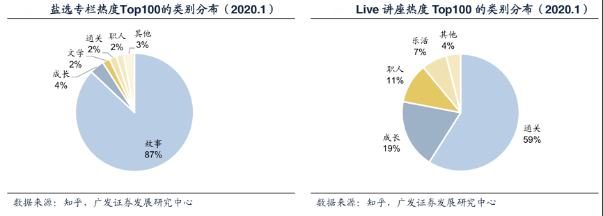 經(jīng)典案例:根據(jù)知乎、廣發(fā)證券發(fā)展研究中心等綜合資訊表明,知乎的付費內(nèi)容趨向娛樂化,鹽選專欄占新增付費內(nèi)容的比例從2018年12月的15% 提升至2020年12月的79%,其中以奇聞和言情為主要題材的故事專欄占據(jù)了鹽選專 欄熱度Top100的87%份額。