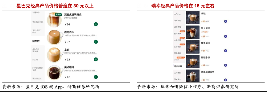 經(jīng)典案例:根據(jù)星巴克ios端App、瑞幸咖啡微信小程序、浙商證券研究所等綜合資訊表明,星巴克件單價(jià)水平普遍在 30 元以上,而瑞幸在 16 元左右,且使用的原料(如咖啡豆、牛奶)未有明顯劣勢(shì),口感并無大的差異。原因主要在于兩點(diǎn):1)瑞幸的自取模式節(jié)省了租金成本。星巴克有大量顧客是外帶飲用的,卻依然承擔(dān)了租金成本; 2)瑞幸戰(zhàn)略性調(diào)低了產(chǎn)品的物料毛利率(物料毛利率即(產(chǎn)品收入-物料成本)/產(chǎn)品收 入)。根據(jù)各公司公告,瑞幸這一指標(biāo)僅有 50%左右,而星巴克約為 70%左右(含部分物流成本,因此或更高)。