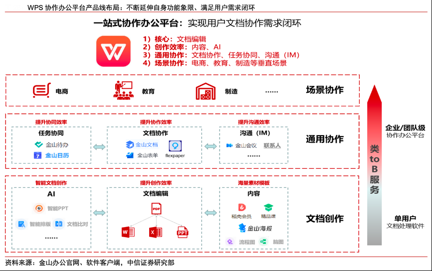 經(jīng)典案例:根據(jù)金山辦公官網(wǎng)、軟件客戶(hù)端、中信證券研究部等綜合資訊表明,金山辦公公司于 2020 年 12 月CHAO 辦公大會(huì)宣布將“協(xié)作”加入此前“多屏、云、內(nèi)容、 AI”形成新五大戰(zhàn)略,表示未來(lái)將投入 1/3 以上研發(fā)力量在“協(xié)作”領(lǐng)域,并通過(guò)協(xié)作戰(zhàn) 略發(fā)力千萬(wàn)級(jí) SMB 市場(chǎng)。