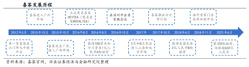 經(jīng)典案例:根據(jù)喜茶官網(wǎng)、興業(yè)證券經(jīng)濟(jì)與金融研究院等綜合資訊表明,喜茶是新式茶飲的開(kāi)創(chuàng)者,其產(chǎn)品創(chuàng)新性地使用了原葉茶基底并搭配上芝士奶蓋,受到消費(fèi)者的廣泛好評(píng)。2012 年 5 月,第一家喜茶在江門市開(kāi)業(yè)。2020 年 6 月,喜茶獲得 D 輪融資,估值超過(guò) 600 億人民幣。喜茶集聚中國(guó)文化傳統(tǒng)與創(chuàng)意創(chuàng)新于一體,專注于呈現(xiàn)優(yōu)質(zhì)茶香,開(kāi)啟了新式茶飲風(fēng)潮。