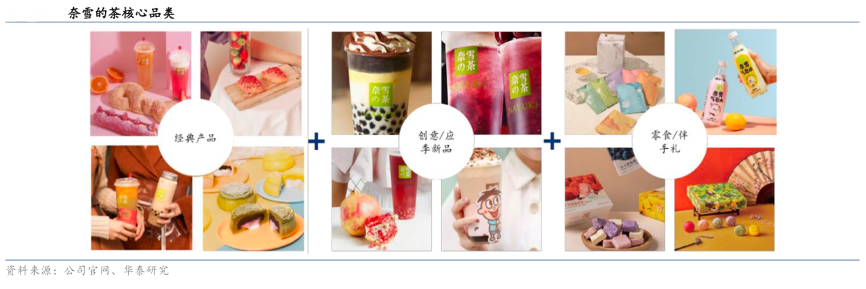 經(jīng)典案例:根據(jù)公司官網(wǎng)、華泰研究等綜合資訊表明,奈雪的茶核心菜單包括 25+種經(jīng)典茶飲、25+種烘焙產(chǎn)品,其中三大經(jīng)典鮮果茶霸氣芝士草莓、霸氣橙子、霸氣芝士葡萄廣受消費(fèi)者歡迎,2020共售出近 2180 萬杯,占奈雪的茶現(xiàn)制茶飲零售總額的 27.6%。