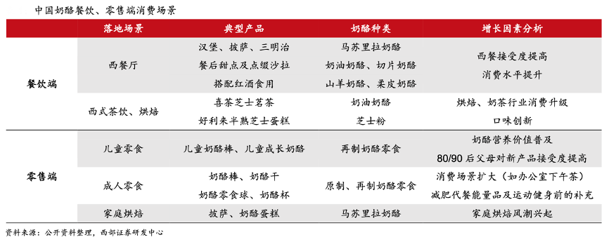 經(jīng)典案例:根據(jù)公開資料、西部證券研發(fā)中心等綜合資訊表明,隨著消費(fèi)者健康意識的增強(qiáng),健康營養(yǎng)與方便快捷兼?zhèn)涞牧闶呈艿阶放?,富含鈣、蛋白質(zhì)等多種營養(yǎng)的創(chuàng)新奶酪零食兒童奶酪棒成為年輕父母的選擇;此外,疫情催化家庭烘焙流行,馬蘇里拉奶酪碎實現(xiàn)由 B 到 C 切換,開始發(fā)力零售市場。對比日韓,我國奶酪市場尚有10 倍空間。根據(jù)歐睿,2020 年我國奶 酪 C 端市場規(guī)模 99.82 億元,長期空間可看千億。