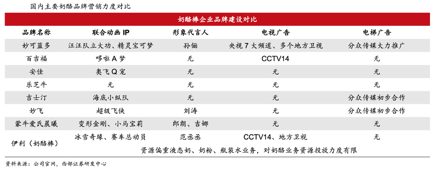 經(jīng)典案例:根據(jù)公司官網(wǎng)、西部證券研發(fā)中心等綜合資訊表明,妙可藍(lán)多立足明星單品奶酪棒,通過“動(dòng)畫IP+形象代言人+電視廣告+分眾”的 全方位營銷組合拳,立體化打造品牌力,創(chuàng)造優(yōu)質(zhì)的用戶消費(fèi)體驗(yàn)。