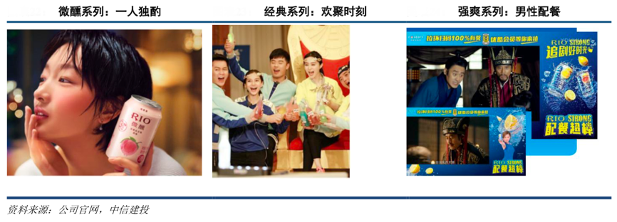經(jīng)典案例:根據(jù)公司官網(wǎng)、中信建投等綜合資訊表明,百潤股份微醺系列以“一個人 的微醺”為核心定位,通過廣告視頻和廣告詞,搭建女性獨飲的消費場景。2018 年周冬雨成為微醺系列代言人,演繹了“一個人的小酒時光”的廣告視頻,成功精準(zhǔn)到了女性“一人獨酌”的消費場景。經(jīng)典系列基于《奔跑 吧兄弟》、《愛情公寓》等多主角生活影視和綜藝的宣傳,打造了以年輕消費群體的交友聚會為主的消費場景。強(qiáng)爽系列基于 8 度酒精度數(shù)的特征,以及《軍師聯(lián)盟》影視劇宣傳、小S代言,定位于追求快速放壓減壓和高 腹脹度的男性化群體。