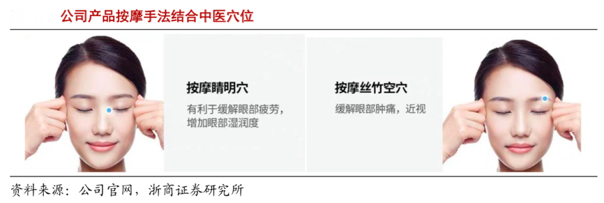 經(jīng)典方法:根據(jù)公司官網(wǎng)、浙商證券研究所等綜合資訊表明,倍輕松公司產(chǎn)品的按摩技術(shù)由中醫(yī)理論發(fā)展支撐,為消費(fèi)者提供了差異化的產(chǎn)品功能,例如:公司的眼部按摩器結(jié)合砭針灸等中醫(yī)理論,明星產(chǎn)品 iSee 系列可以按壓晴明穴、絲竹空穴、太陽穴等八大穴位日常保養(yǎng),還原真人手指按摩手法,從根本上加強(qiáng)使用體驗(yàn)。