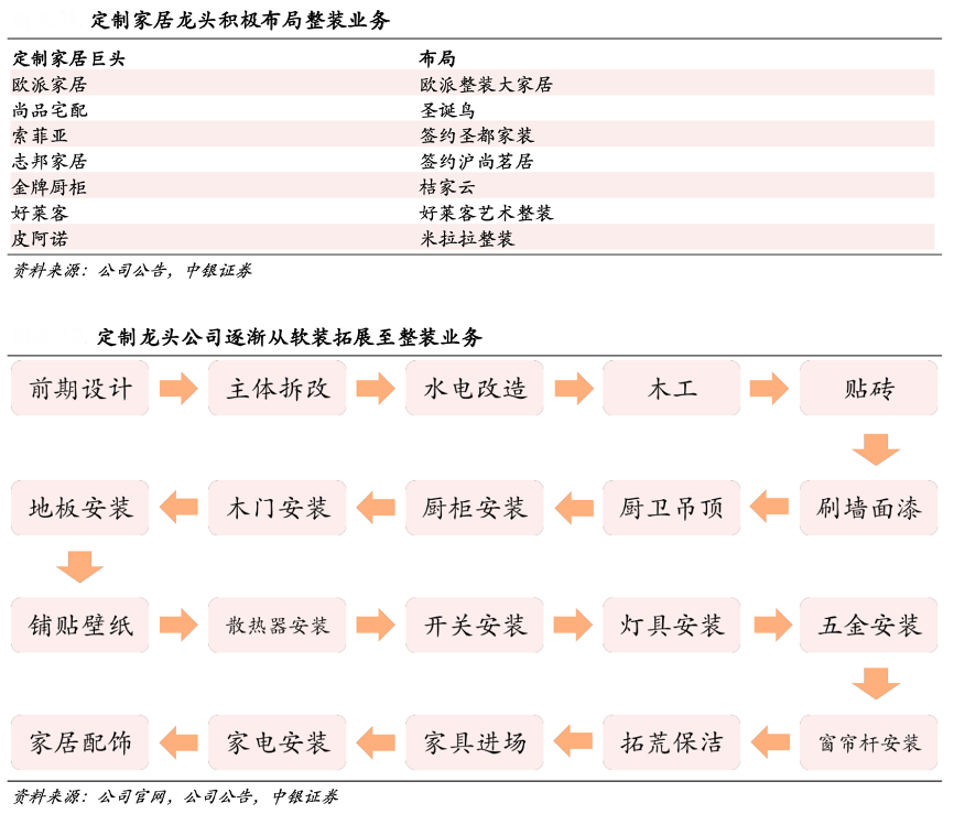 經(jīng)典案例:根據(jù)公司官網(wǎng)、公司公告、中銀證券等綜合資訊表明,整裝大家居模式在近年興起,不僅順應(yīng)了行業(yè)的發(fā)展趨勢(shì),并且很好的適配了二手房趨勢(shì)。整裝大家居采用全產(chǎn)業(yè)鏈發(fā)展模式,涵蓋了主輔材、家居軟飾的全案以及家電家紡等組成部分,對(duì)其供應(yīng)鏈建設(shè),運(yùn)營(yíng)效率以及設(shè)計(jì)水平提出了較高要求。