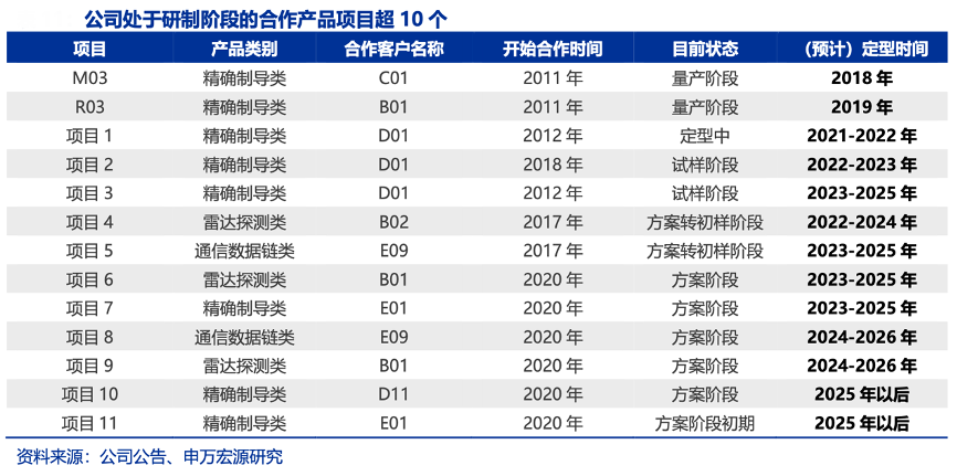 經(jīng)典案例:根據(jù)公司公告、申萬宏源研究等綜合資訊表明,雷電微力公司目前與多個(gè)總體單位協(xié)作配套研制 10 余個(gè)型號產(chǎn)品,相關(guān)產(chǎn)品處于方案、初樣、試樣、定型批產(chǎn)等不同階段,預(yù)計(jì)未來幾年其將陸續(xù)有新的產(chǎn)品定型并批產(chǎn)供貨。