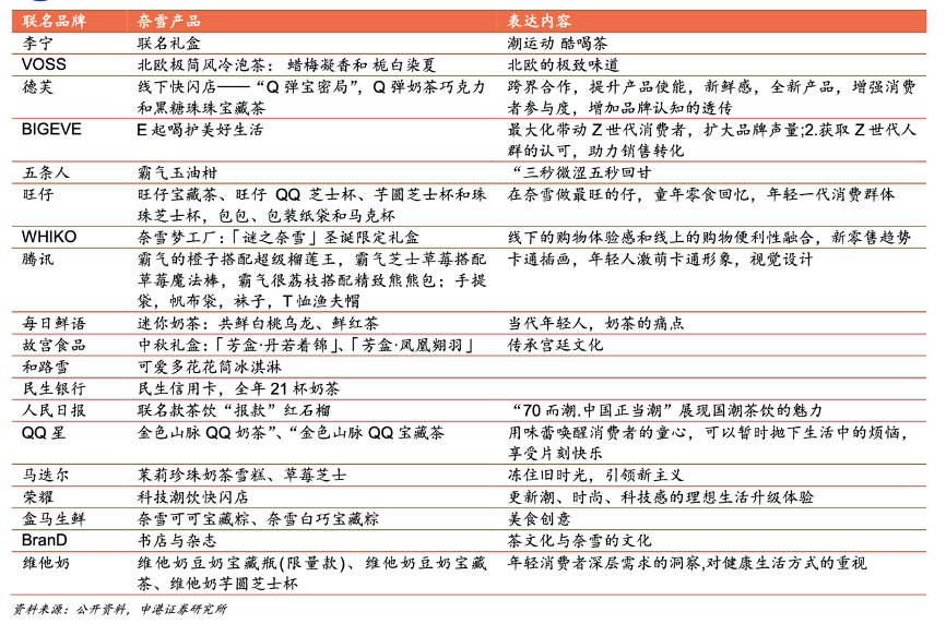 經(jīng)典案例:根據(jù)公開資料、申港證券研究所等綜合資訊表明,奈雪和李寧、德芙等跨界合作,共同開發(fā)聯(lián)名產(chǎn)品,創(chuàng)造品牌新價值。