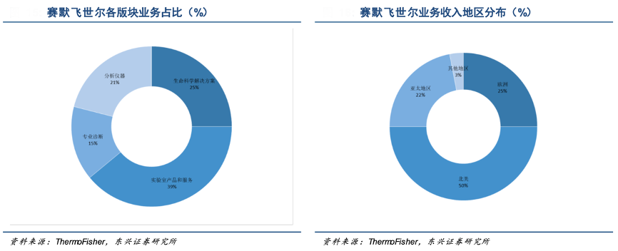 經(jīng)典案例:根據(jù)ThermoFisher、東興證券研究所等綜合資訊表明,賽默飛世爾目前主要的收入來(lái)源地為北美(占比50%)、歐洲(25%)和亞太地區(qū)(22%)。其中中國(guó)地區(qū)增長(zhǎng)最為迅猛,2019年賽默飛世爾在中國(guó)地區(qū)收入達(dá)到約 26 億美元,占總收入比重約10%。