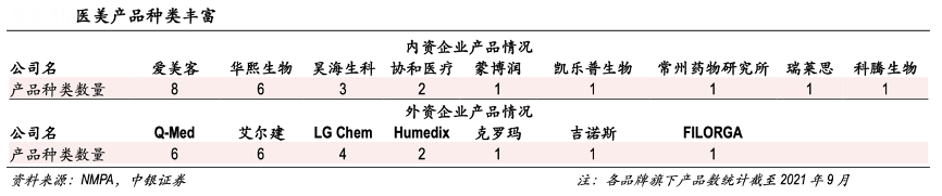 經(jīng)典案例:根據(jù)NMPA、中銀證券等綜合資訊表明,各醫(yī)美公司已經(jīng)擁有多款醫(yī)美產(chǎn)品。目前消費者對輕醫(yī)美產(chǎn)品呈現(xiàn)多樣、細(xì)致的需求:從功能來看,包括填充、除皺、豐唇、植發(fā)、塑性等多樣化需求;從身體部位來看,醫(yī)美項目部位除了涵蓋臉頰外,還涵蓋了眉間、鼻唇間等更精細(xì)化部位;從感官體驗上來看,在產(chǎn)品安全性之上,追求無痛、長效持久、自然等新需求。