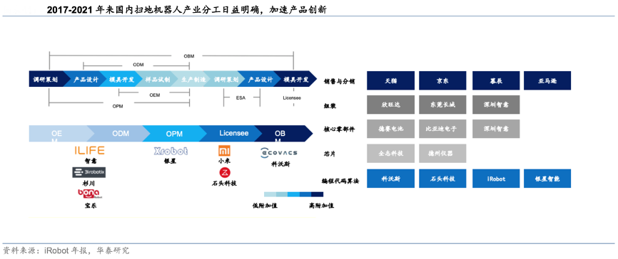 經(jīng)典案例:根據(jù)iRobot年報(bào)、華泰研究等綜合資訊表明,得益于過去 3-5 年全球掃地機(jī)器人產(chǎn)業(yè)鏈的分工與配套產(chǎn)業(yè)的完善,國內(nèi)技術(shù)轉(zhuǎn)化效率明顯提升,這也是云鯨、eufy等新勢力能夠異軍突起的產(chǎn)業(yè)基礎(chǔ)之一。而繼云鯨之后,行業(yè)正源源不斷的吸引互聯(lián)網(wǎng)人才。
