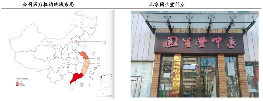 經(jīng)典案例:根據(jù)wind、公司官網(wǎng)、華安證券研究所等綜合資訊表明,固安堂公司立足廣州,輻射北京、深圳、佛山、中山、無(wú) 錫、南京、福州、上海、蘇州、昆山、成都、寧波等地區(qū),截至目前其管理線下私立營(yíng)利性醫(yī)療機(jī)構(gòu) 42 家(其中 32 家線下醫(yī)療機(jī)構(gòu)系并購(gòu),10家為自建,其中 39 家為定點(diǎn)醫(yī)療機(jī)構(gòu))、覆蓋 11 個(gè)城市,截止目前固安堂為31個(gè)省、343個(gè)城市的客戶提供線上線下服務(wù)。