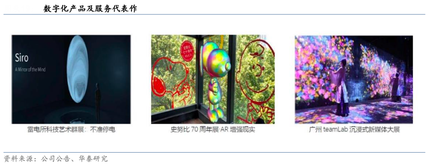 經(jīng)典案例:根據(jù)公司公告、華泰研究等綜合資訊表明,風(fēng)語(yǔ)筑公司通過掌握的數(shù)字沙盤、立體投影技術(shù)、虛擬現(xiàn)實(shí)、動(dòng)感影院特效技術(shù)、多媒體互動(dòng)技術(shù)、全息成像技術(shù)、裸眼 3D 技術(shù)等多項(xiàng)高科技數(shù)字 化展示技術(shù),以AR/VR/MR、4K/8K 超高清視頻等作為媒介,以專題定制形式,打造沉浸 式場(chǎng)景和商業(yè)消費(fèi)場(chǎng)景及各類數(shù)字視覺服務(wù)等。