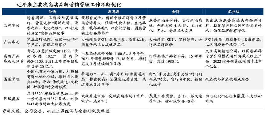 經(jīng)典案例:根據(jù)公司公告、興業(yè)證券經(jīng)濟與金融研究院等綜合資訊表明,2018年以來,主要次高端酒企在品牌營銷、產(chǎn)品布局、渠道精細化運作等方面均有加強,并且更加注重消費者培育,動銷氛圍穩(wěn)步提升,核心市場數(shù)量/規(guī)模持續(xù) 增長。